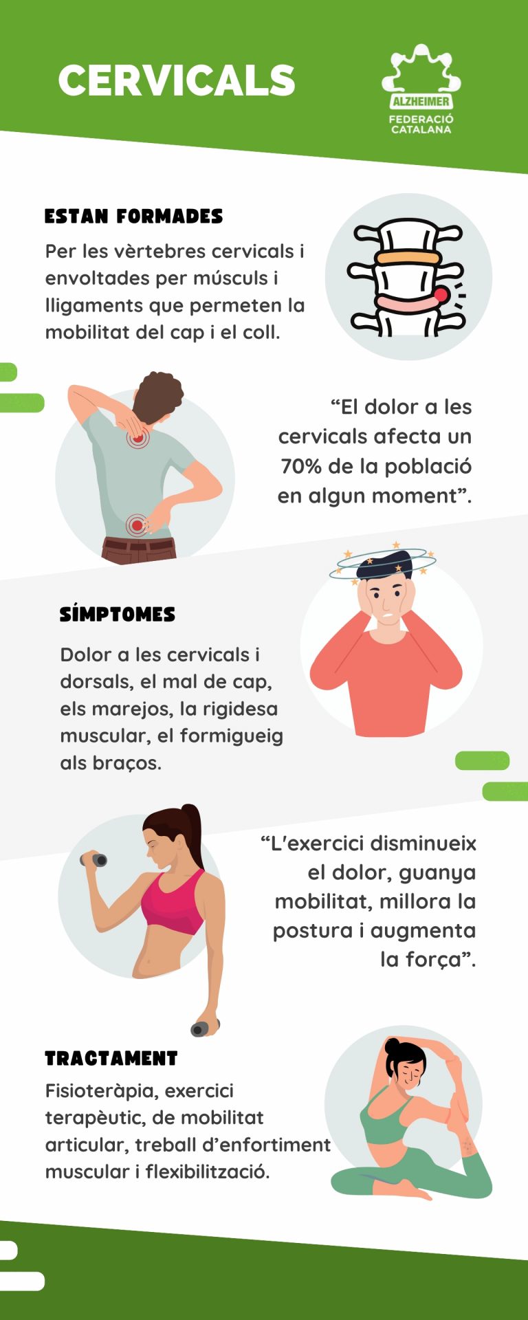 Les cervicals són essencials per a la mobilitat del cap i del coll, estan envoltades de músculs i lligaments que ajuden a mantenir-nos actius i sense dolor. Diverses causes poden alterar el funcionament i produir dolor a les cervicals com són les contractures musculars i torticoli per estrès o males postures; l’artrosi cervical i la degeneració discal per problemes degeneratius; la fuetada cervical per traumatismes. Per aquest motiu la nostra fisioterapèuta Anna Grau Fradera ens dóna consells per mantenir una postura adequada, fent estiraments regulars i cuidant el nostre cos. Podeu descarregar-ne el PDF aquí